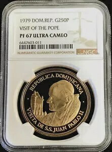 1979年 金貨 ドミニカ共和国 250ペソ 教皇ヨハネ・パウロ2世訪問 NGC プルーフ 67 UC