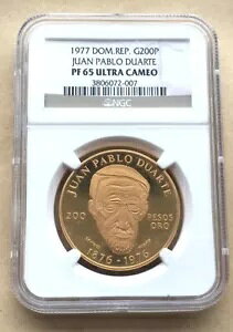 ドミニカ共和国 1977年 フアン・パブロ・ドゥアルテ 200ペソ NGC金貨 プルーフ