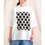 tシャツ 「prit」 空紡天竺×プリント 5分袖フレームTシャツ (ドット&チェック) レディース