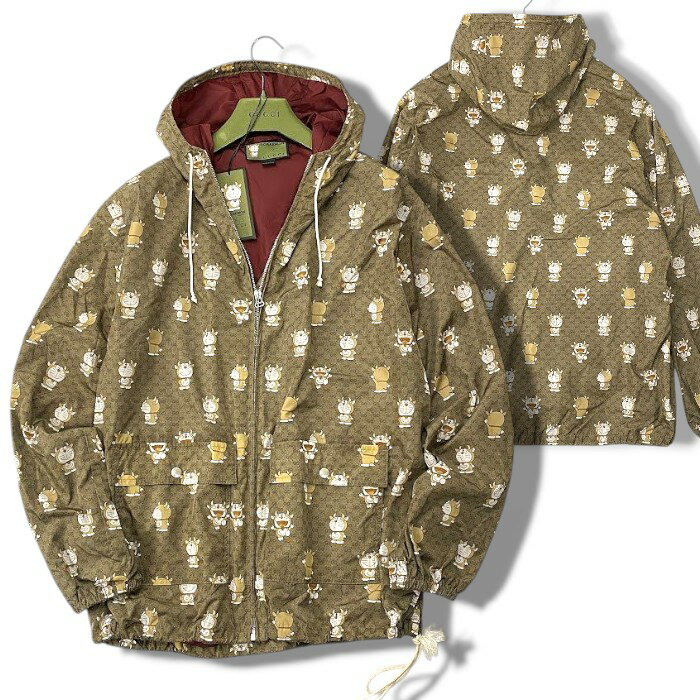 【中古】【新古品・未使用品】GUCCI × DORAEMON グッチ ドラえもん イタリア製 50周年記念 牛ドラえもん 牛えもん フーディー ナイロン ジャケット パーカー 654754 ブラウン2231 50 ▲000▼51017s02