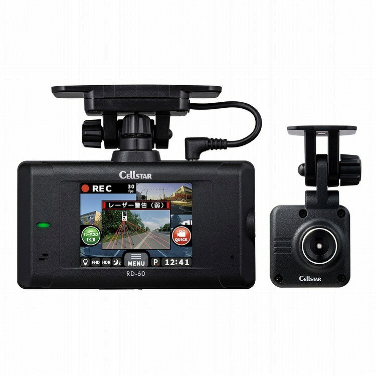 ドライブレコーダー&セーフティレーダーセット RD-60(前後2カメラ/2.4型タッチ/200万画素/GPS+おしらせ機能/HDR/3Gセンサー/一体型/GPS/レーザー式/X、Kバンド/64GB/microSDデータ更新) セルスター工業 RD-60【納期目安:1週間】 ドライブレコーダー セーフティレーダー