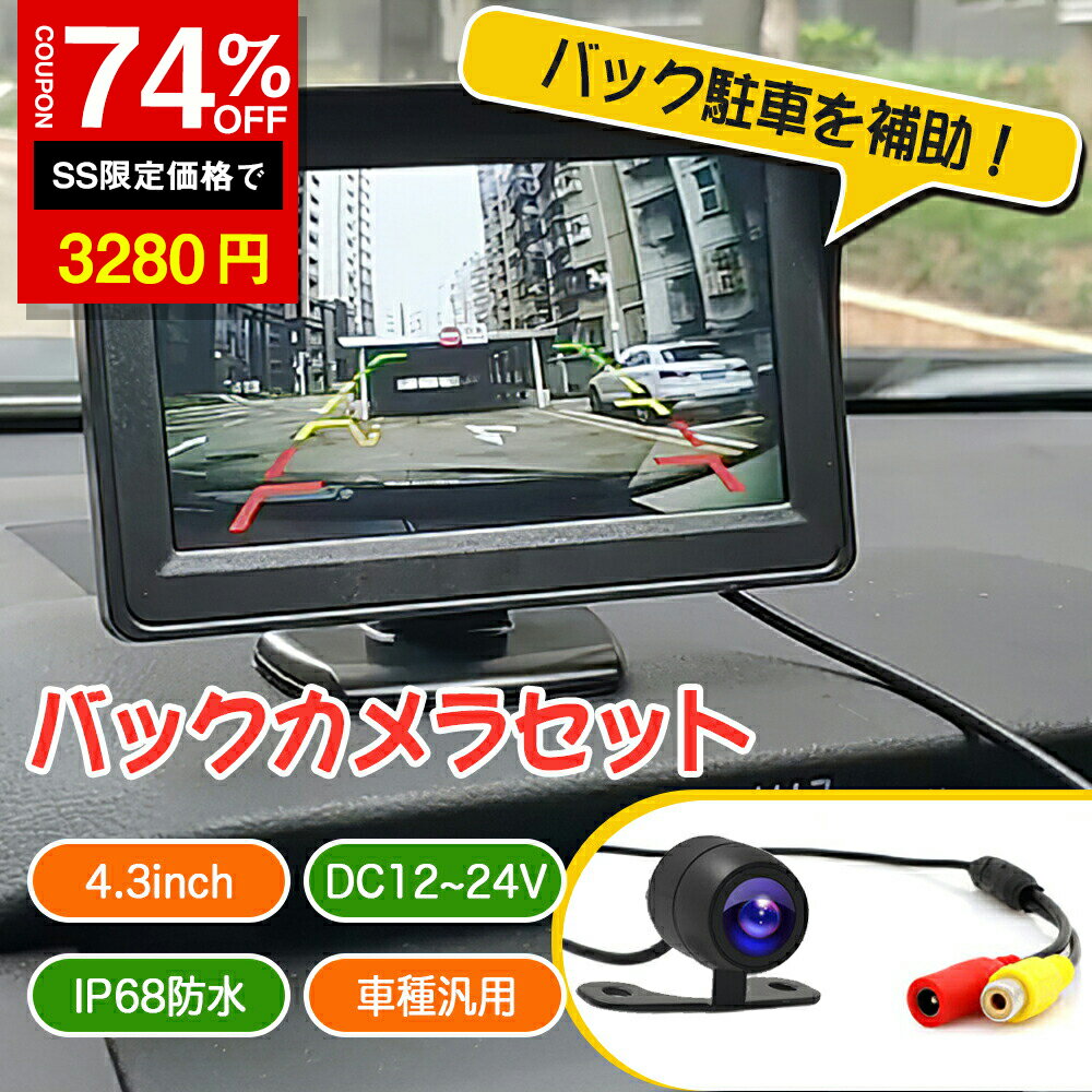★SS激安74%OFF→3280円★バックカメラ モニター セット 24v 12V 4.3inch IP68 車載カメラ 車用モニター カーモニタ 車種汎用 防水乗用車 軽自動車 大型車 トラック 角度調整が可能 1m電源コード 6m延長コード 取り付け超簡単 車載