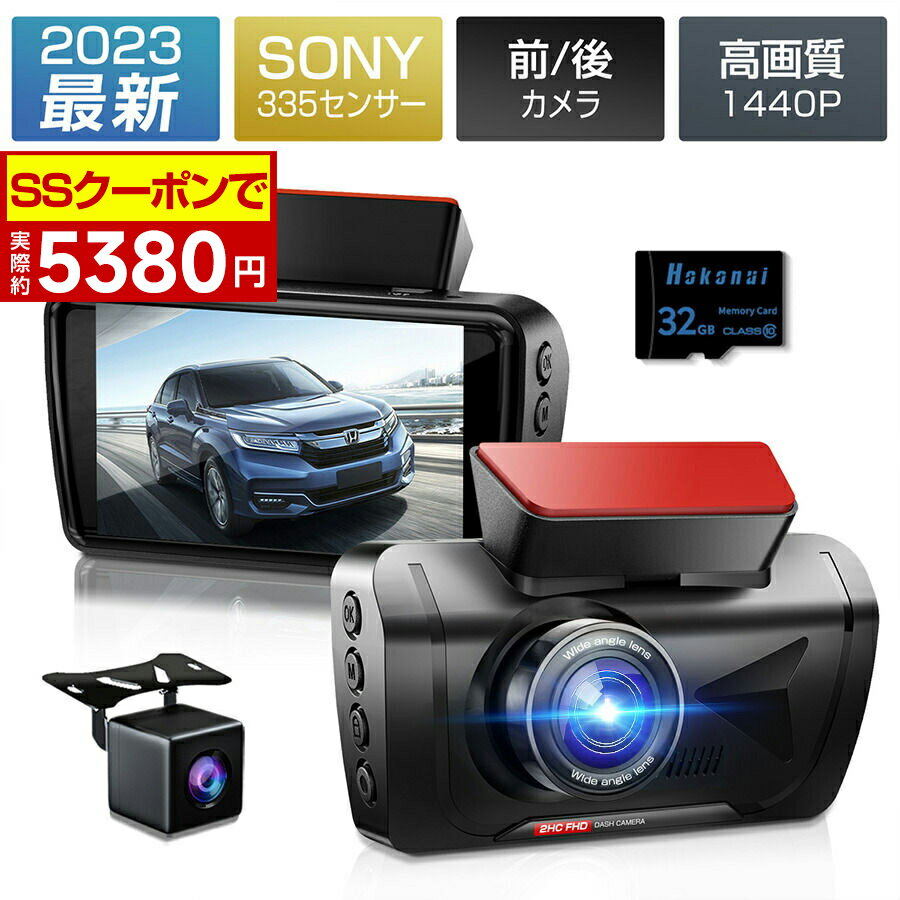 「クーポンで4928円」ドライブレコーダー 前後2カメラ 赤外線暗視ライト ループ録画 1440P HD高画質 170度超広角 32Gカード付属 駐車監視 Gセンサー