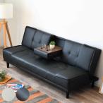 レザー ソファーベッド 幅183cm 3人掛け テーブル付き ドリンクホルダー付き 合皮 ブラック・ホワイト 完成品