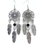 【並行輸入品】シルバードリームキャッチャーイヤリング ダングルフェザービーズ 長さ3.5インチ ブラックビーズ メタルフェザー 金属 プラスチック