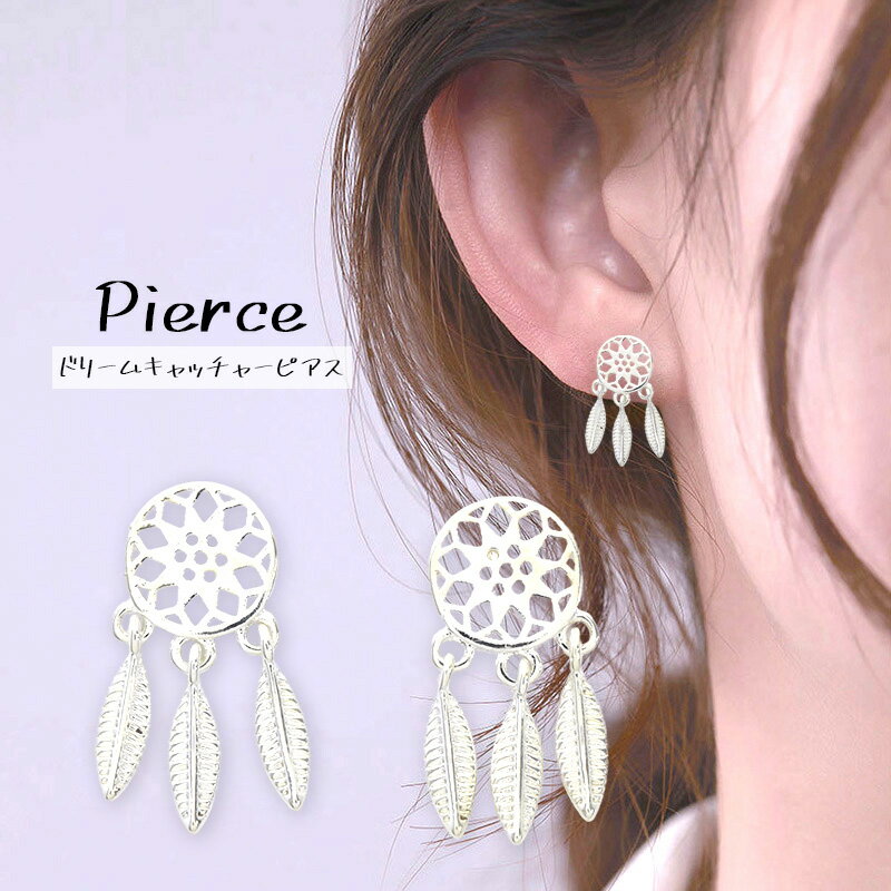 【10%OFFクーポン!4/27(月)9:59まで】アクセサリーショップPIENA フックピアス レディース シルバー925製 練りターコイズ インディアン アメリカン ドリームキャッチャー 羽 フェザー トルコ石 フリンジ アンティーク調 おしゃれ 綺