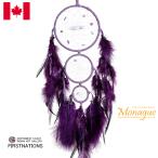ドリームキャッチャー 本物 オジブア族 インディアン ハンドメイド 4インチ10cm ジェネレーション 水晶 カナダ先住民お守り - 紫