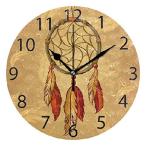【並行輸入品】 ALAZA インデイン エスニック ドリームキャッチャー ラウンド アクリル 壁時計 サイレント カチッとしない 油絵 自宅 オフィス 学校 装飾時計 ア