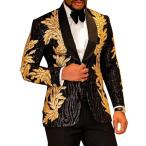 【並行輸入品】メンズ2ピースロイヤルブルースリムシャイニーグリッターゴールドアップリケウエディングドレスジャケットパーティースーツセット(ブレザ