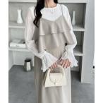 ワンピース 「mily bilet」大人シック。チョーカーデザインレイヤード風キャンディースリーブドッキングナローワンピース(長袖)