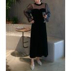 ドレス 「forksy.」「オケージョン対応」配色切替オーガンジー×ベロアドッキングドレス