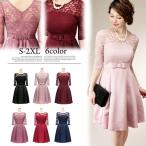 ワンピース 総レース パーティードレス レースワンピ−ス レディース 大人 可愛い お呼ばれ フォーマル エレガント上品 Aライン 7分袖