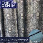 カーテン デニム おしゃれ ドレープカーテン プリントカーテン インディゴネイビー 幅100cm 丈140cm 2枚 denim ハトメ リバーシブル 青 ブルー 本物 井原 岡山