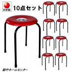送料無料 お得10脚セット 日本製 パイプ椅子 ドーナツ型 スタッキングチェア 丸椅子 丸イス スツール 丈夫 完成品 赤 m-108x10