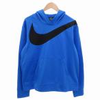 ナイキ NIKE DRI-FIT パーカー フーディ ビッグロゴ バイカラー スウッシュ 長袖 L 青 ブルー 黒 ブラック /FF ■GY35 メンズ