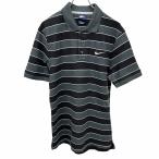 ナイキ NIKE ポロシャツ 鹿の子 ボーダー 半袖 ロゴ刺繍 ポケット無し 裾の両側にスリット 綿100% L グレー系 グレー系×黒×白 メンズ