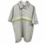 ナイキ NIKE ポロシャツ 鹿の子 ボーダー 半袖 ポケット無し 裾の両側にスリット 綿100% コットン100% L ヘザーグレー 杢グレー×黄 メンズ
