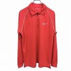 ナイキ ゴルフ ポロシャツ ラグランスリーブ 長袖 刺繍 ポケット無し ハーフジップ ポリ100% M オレンジレッド系 赤系×グレー メンズ