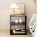 サイドテーブル ベッドサイドテーブル メッシュ収納棚 木製天板 ナイトテーブル 幅40X奥行37X高さ45cm コンパクト コーヒー テーブル