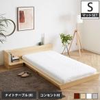 Platform Bed ローベッド シングル ナイトテーブルR(右) 20cm厚 ポケットコイルマットレス付 棚付きコンセント2口 木製ベッド フロアベッド
