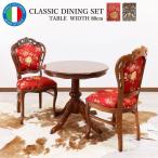 イタリア ダイニングテーブル 3点セット 80cm 円形 象嵌 2人用 アッティカ 木製 ダイニングセット 猫脚 GM-B