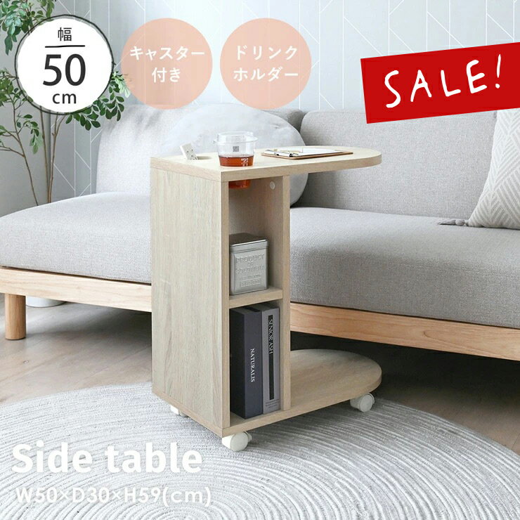 【30%OFF】【2025年新商品】サイドテーブル キャスター付き コの字 おしゃれ 北欧 ナイトテーブル ベッドサイドテーブル ソファ 幅50cm 韓国インテリア ドリンクホルダー カップホルダー <リシア サイドテーブル RE60-30ST>