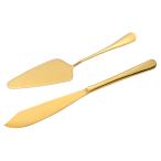 uxcell ケーキナイフ&サーバーセット 11/9\"ケーキカッティングセット ステンレススチールケーキサービングセット 金