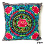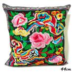 モン族クッションカバー44cm[花鳥風月] O おしゃれな エスニック クッション カバー 細かい刺繍 ナガ族 タイ雑貨 アジアン 雑貨 インテリア リーフ柄 かわいい