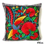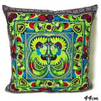 モン族クッションカバー44cm[花鳥風月] i おしゃれな エスニック クッション カバー 細かい刺繍 ナガ族 タイ雑貨 アジアン 雑貨 インテリア リーフ柄 かわいい
