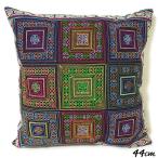 モン族クッションカバー44cm[花鳥風月] J おしゃれな エスニック クッション カバー 細かい刺繍 ナガ族 タイ雑貨 アジアン 雑貨 インテリア リーフ柄 かわいい