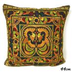 モン族クッションカバー44cm[花鳥風月] N おしゃれな エスニック クッション カバー 細かい刺繍 ナガ族 タイ雑貨 アジアン 雑貨 インテリア リーフ柄 かわいい