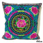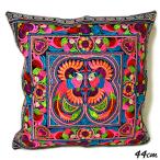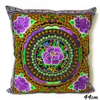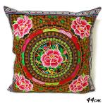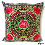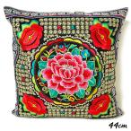 モン族クッションカバー44cm[花鳥風月] M おしゃれな エスニック クッション カバー 細かい刺繍 ナガ族 タイ雑貨 アジアン 雑貨 インテリア リーフ柄 かわいい