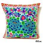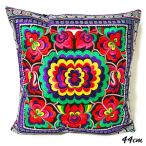 モン族クッションカバー44cm[花鳥風月] L おしゃれな エスニック クッション カバー 細かい刺繍 ナガ族 タイ雑貨 アジアン 雑貨 インテリア リーフ柄 かわいい