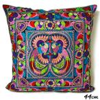 モン族クッションカバー44cm[花鳥風月] H おしゃれな エスニック クッション カバー 細かい刺繍 ナガ族 タイ雑貨 アジアン 雑貨 インテリア リーフ柄 かわいい