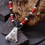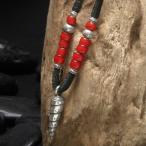 カレン 族 シルバー ナガ族 先祖伝来 ホワイトハート ビーズ 赤 鹿革紐 ネックレス メンズ レディース フリーサイズ タケノコ型ペンダント SV950