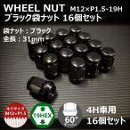 ホイール袋ナット(ブラック)16個セット M12XP1.5-19HEX 4H車用(ラグナット ホイールナット 黒 4穴)