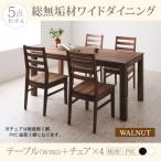 ダイニングセット(テーブル&チェア) 天然木ウォールナット無垢材北欧デザイナーズダイニング 4人 5点セット(テーブル+チェア4脚) W150 組立設置付