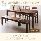 (タイムセール中) ダイニングテーブルセット 4人掛け 無垢 4人用 150cm 天然木ウォールナット 4点セット(テーブル+チェア2脚+ベンチ1脚) 組立付き