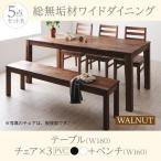 (タイムセール中) 食卓テーブルセット 無垢 150cm 4人用 天然木ウォールナット 4点セット(テーブル+チェア2脚+ベンチ1脚) 組立付き