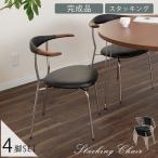 【10%OFFクーポン!10(火)1:59迄】 スタッキングチェア 4脚セット ダイニングチェア スタッキング チェア 完成品 肘付き ハーフアーム ステンレス アイアン おしゃれ 無垢 オーク ウォールナット キャメル ブラウン 座りやすい PVC レザー 椅子 イス 4脚 重ねられる