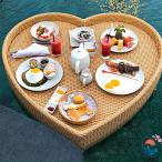 スイミングプールフローティングトレイテーブル、ハンドル付きプール用籐織サービングトレイ、水面フローティングドリンクホルダー、水