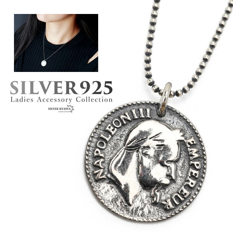 \スーパーSALE 10%OFF 7,810円→7,029円 /シルバー925 ネックレス レディース S925 コインネックレス ナポレオン コイン 硬貨 ボールチェーン シンプル シルバー silver 銀 ペンダント 金属アレルギー対応