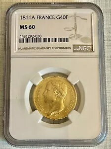 フランス 1811A ナポレオン 40フラン 金貨 NGC MS60 SKU# 5891