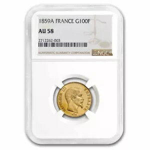 1859-A フランス金貨 100フラン ナポレオン3世 AU-58 NGC