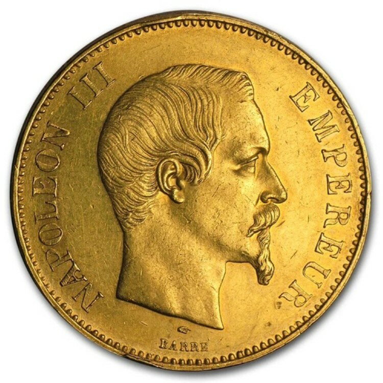 1858-BB フランス ゴールド 100 フラン ナポレオン 3 世 AU-58 NGC