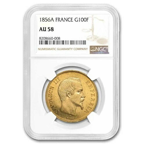 1856-A フランス金貨 100フラン ナポレオン3世 AU-58 NGC