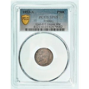 1856-A フランス プルーフ ナポレオン 3 世 5 フラン コイン 5F - NGC プルーフ ディテール (PR / PF)