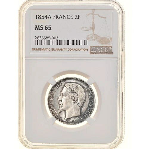 [#970184] コイン、フランス、ナポレオン 3 世、ナポレオン 3 世、2 フラン、1854 年、パリ、NGC、