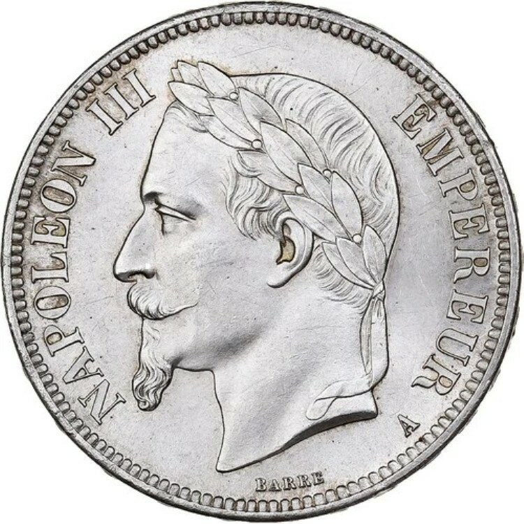 [#488791] フランス、ナポレオン 3 世、5 フラン、1863 年、パリ、シルバー、NGC、MS(63)、ガド