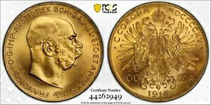 1915 オーストリア ゴールド 100 コロナ リストライク PCGS MS66 KM# 2819